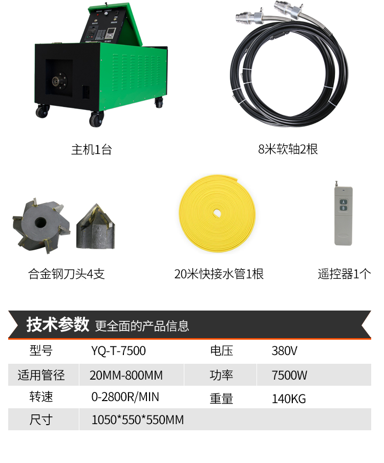 适用工况:可疏通各种强度混凝土堵塞管道,预埋管/穿线管/排水管/预应力管/盲管等,适用于桥梁、隧道、公路、风力发电厂等工况.